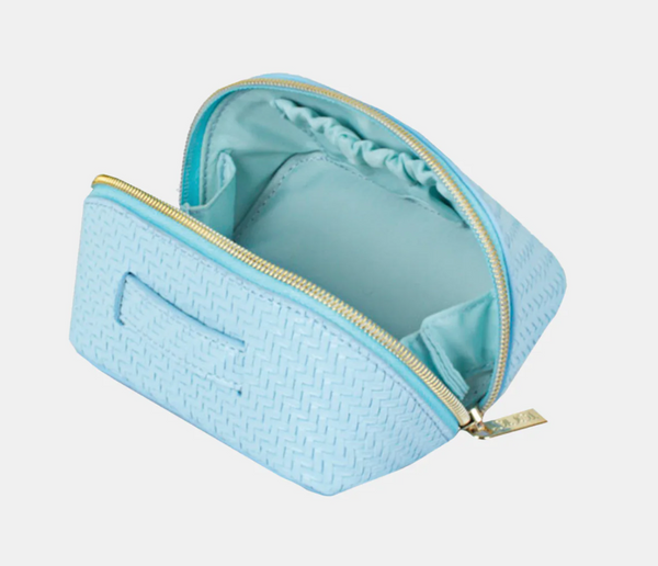 With its timeless woven-look outer and handbag-friendly size, this beauty bag is a must-have accessory for fashion-forward individuals on the move.