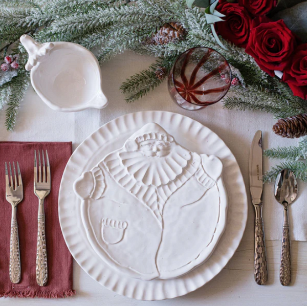 A festive friend to the Pietra Serena collection, Pietra Natale shares Pietra Serena’s handpressed edges, and it adds its own spirit with its jolly, joyful depictions of Babbo Natale, Italy’s Santa Claus. Brimming with charming details like Babbo Natale’s handpressed beard, mittens, and coat pocket for treasures, the Pietra Natale Figural Santa Salad Plate is sure to bring delight to your holiday table for years and years to come.